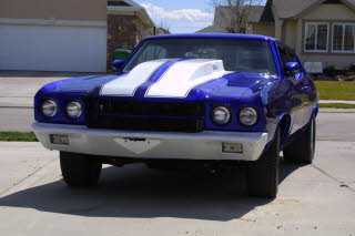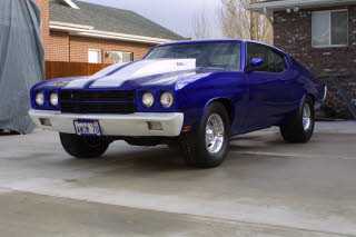 70 Chevelle: My Car. Quickest Quarter Mile run was 11.10@124Painted with House of Kolor Cobalt Blue kandy over Orion Silver Base.